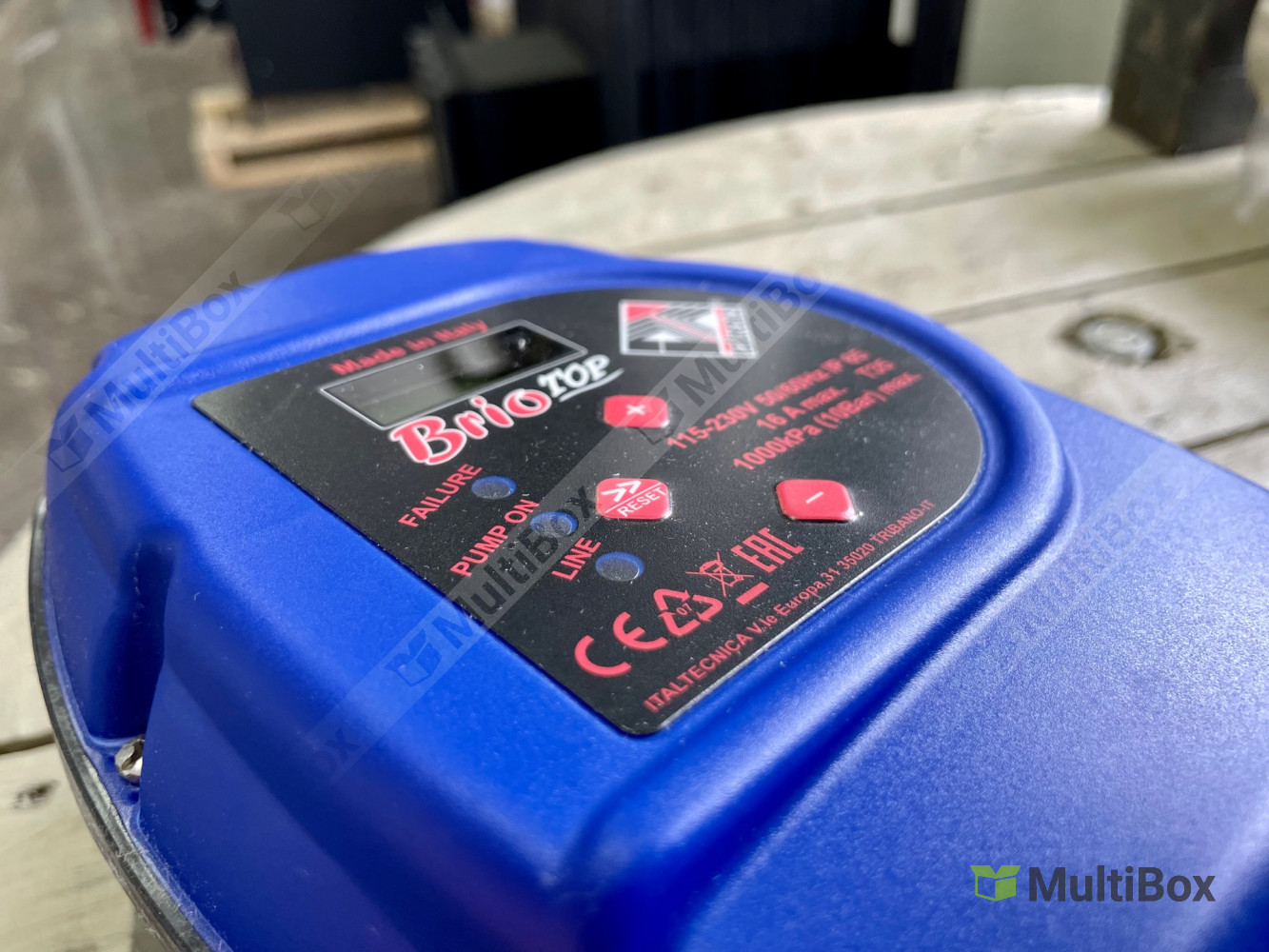 BRIO TOP DIGITAL - это новое цифровое высокотехнологичное устройство для работы с однофазным насосом мощностью до 3HP (2,2kW). Снабжено цифровым дисплеем для отображения величины давления, защищает от «сухого хода» с возможностью автоматического перезапуска, защищает от перегрузки по току, предотвращает замерзание насоса при низких температурах, путем периодического кратковременного запуска насоса и отключает насос при блокировке вращающихся частей. Кроме того производит управление насосами, как «ведущим», так и «ведомым» в бустерных установках с двумя насосами. Оборудовано встроенным обратным клапаном. Подходит для насосных систем без мембранного бака.Дополнительно: