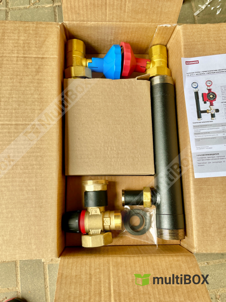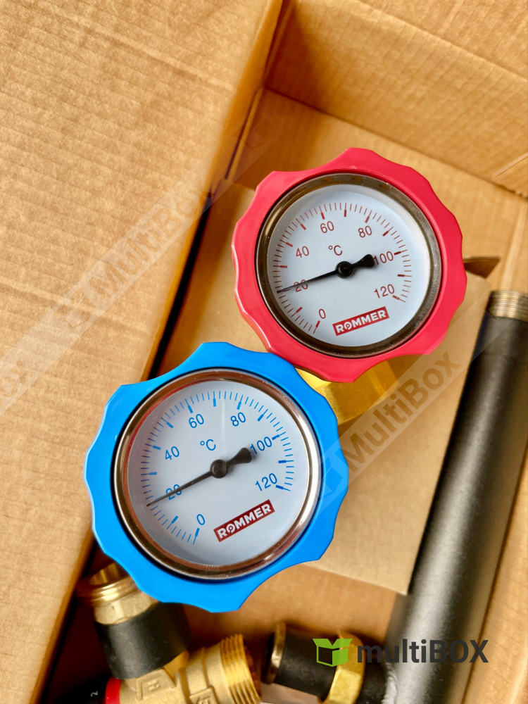 Насосная группа с терм. смесительным клапаном 20-40°С 1", без насоса и теплоизоляции / Rommer