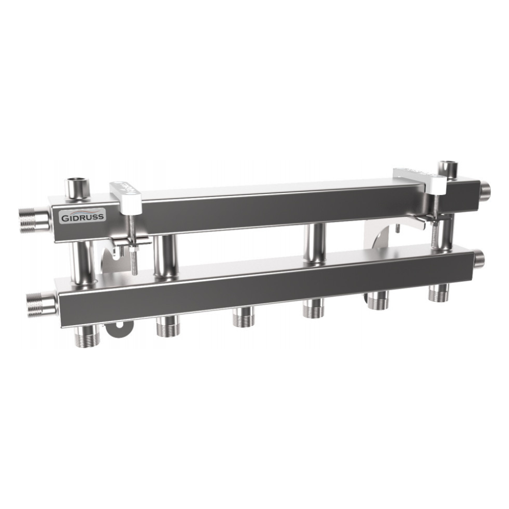 Коллекторы модульные Gidruss MKSS предназначены для обвязки котельных в частных домах до 250 м² с котлом до 40 кВт.Отличительные особенности