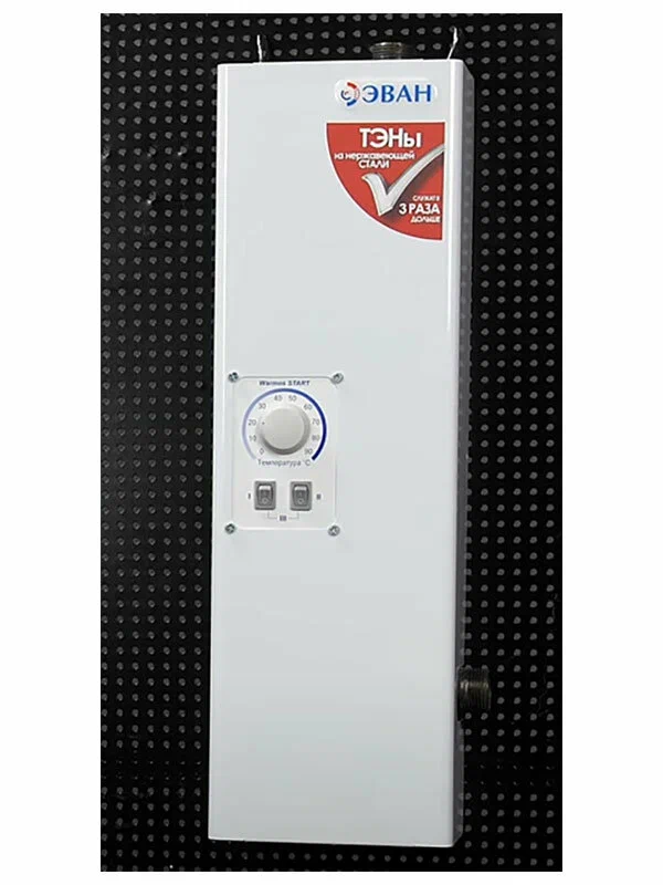 Электрический котел Эван Warmos Start - 14 предназначен для отопления дач, частных домов, небольших торговых и складских помещений. Может быть использован в качестве как основного, так и резервного источника тепла.Отличительные особенности