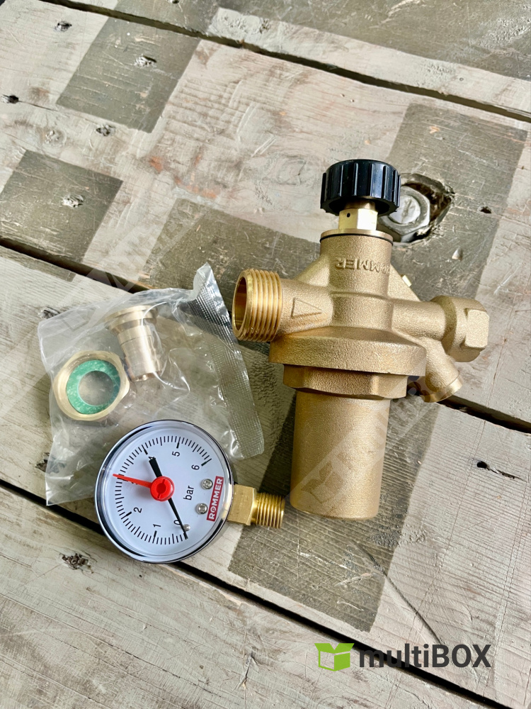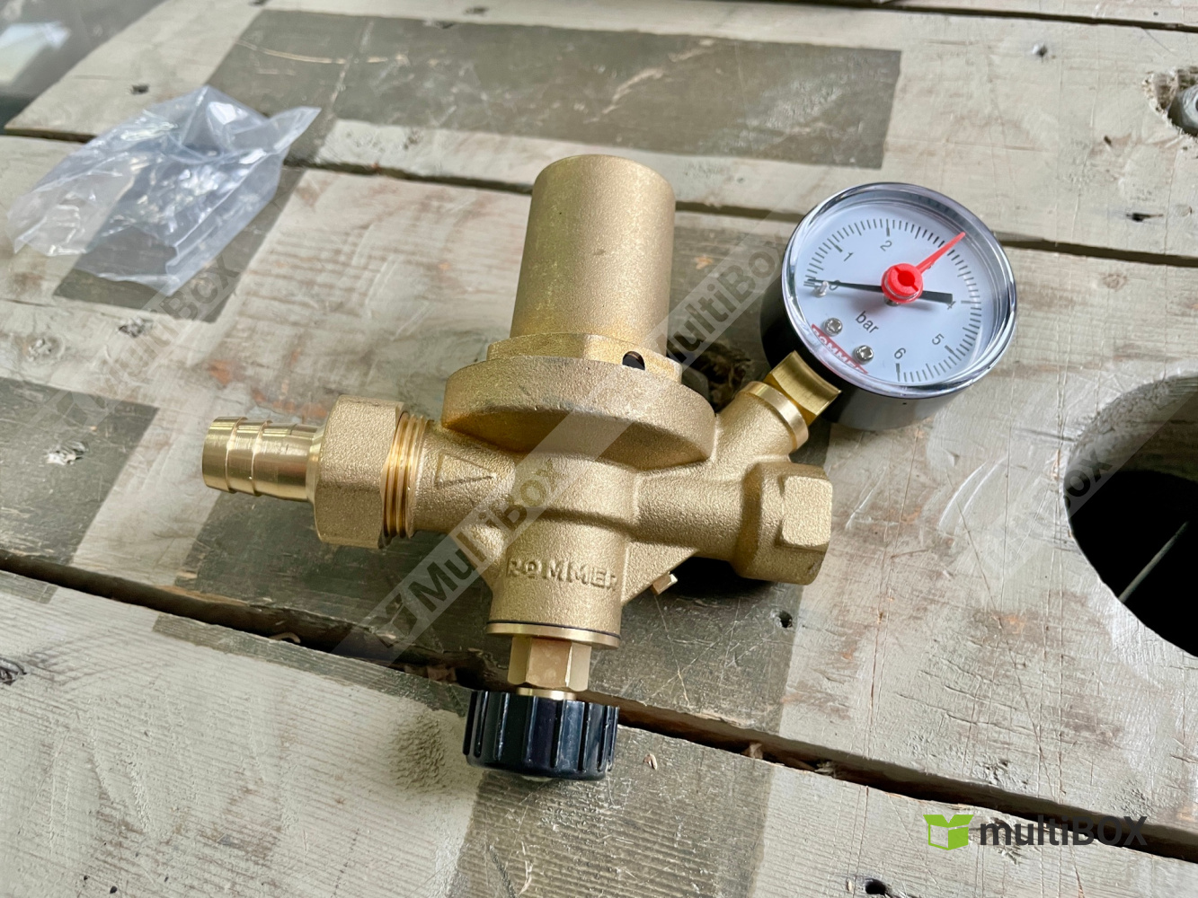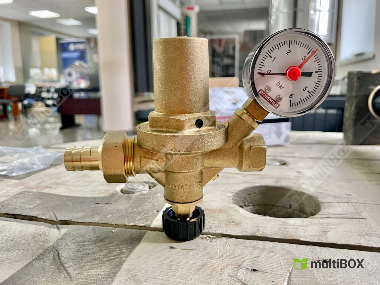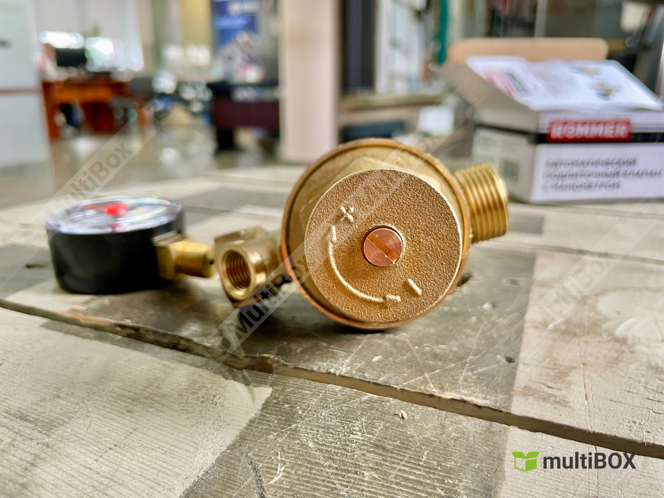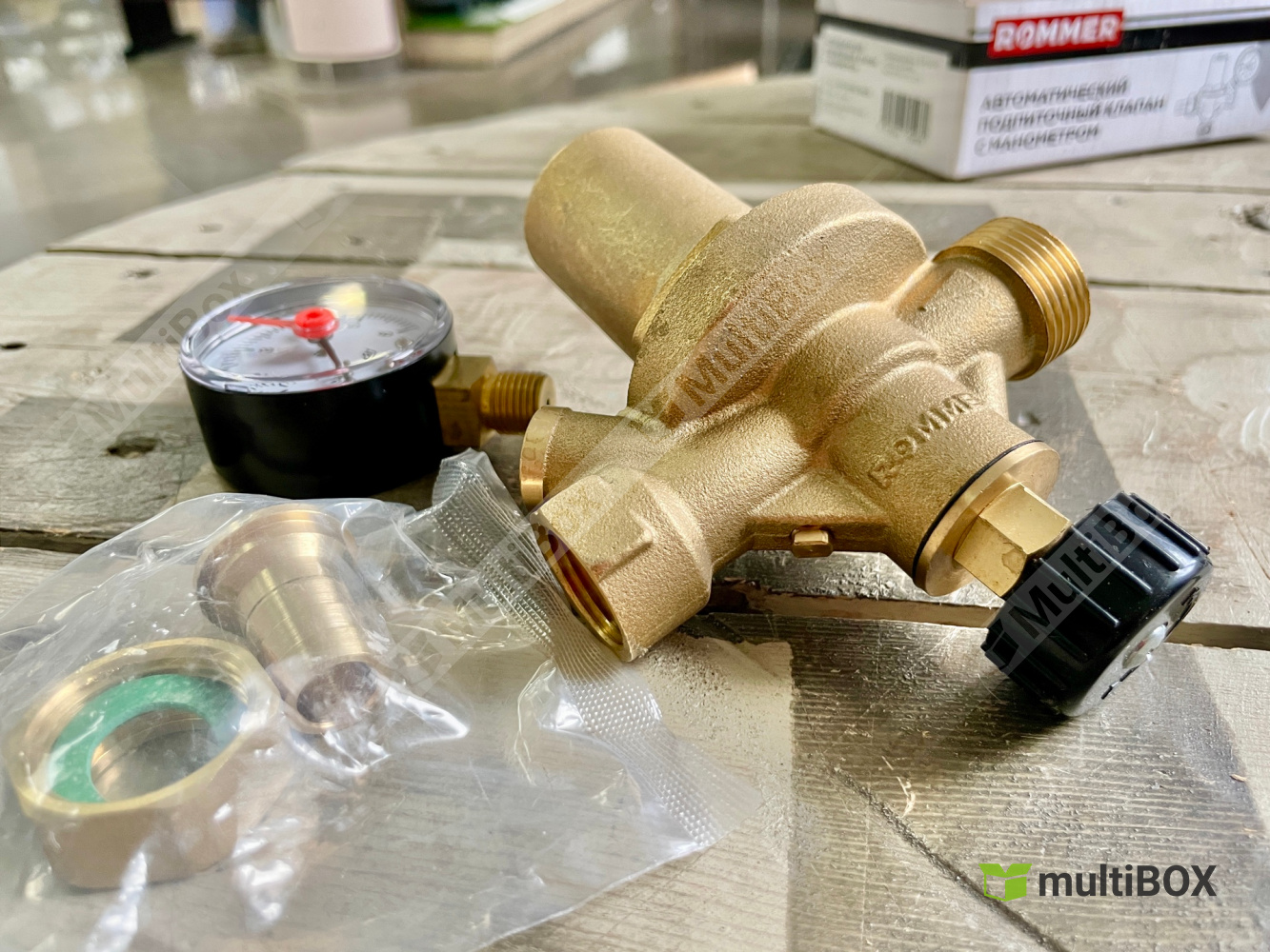 Подпиточный клапан 1/2" ВР-штуцер с манометром, крышка-латунь / Rommer