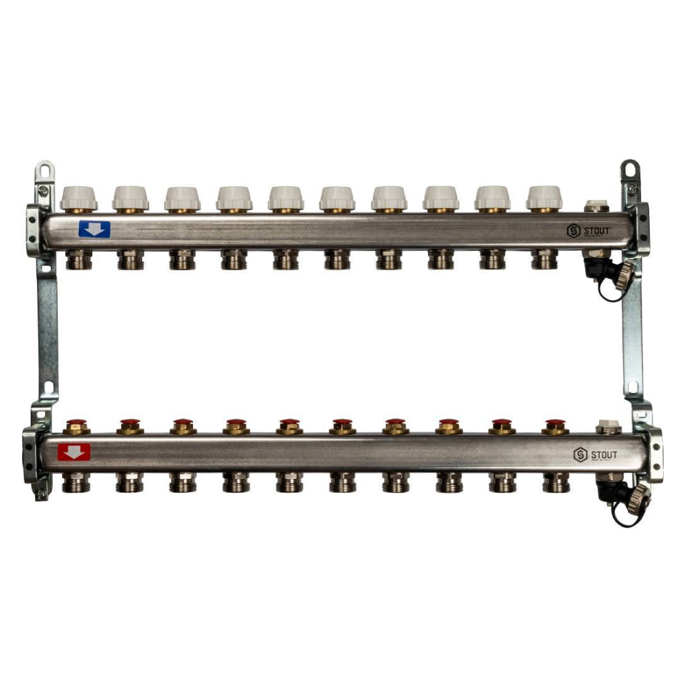 Коллектор из нерж. стали 10 выходов без расходомеров, с клапаном вып. воздуха и сливом / Stout