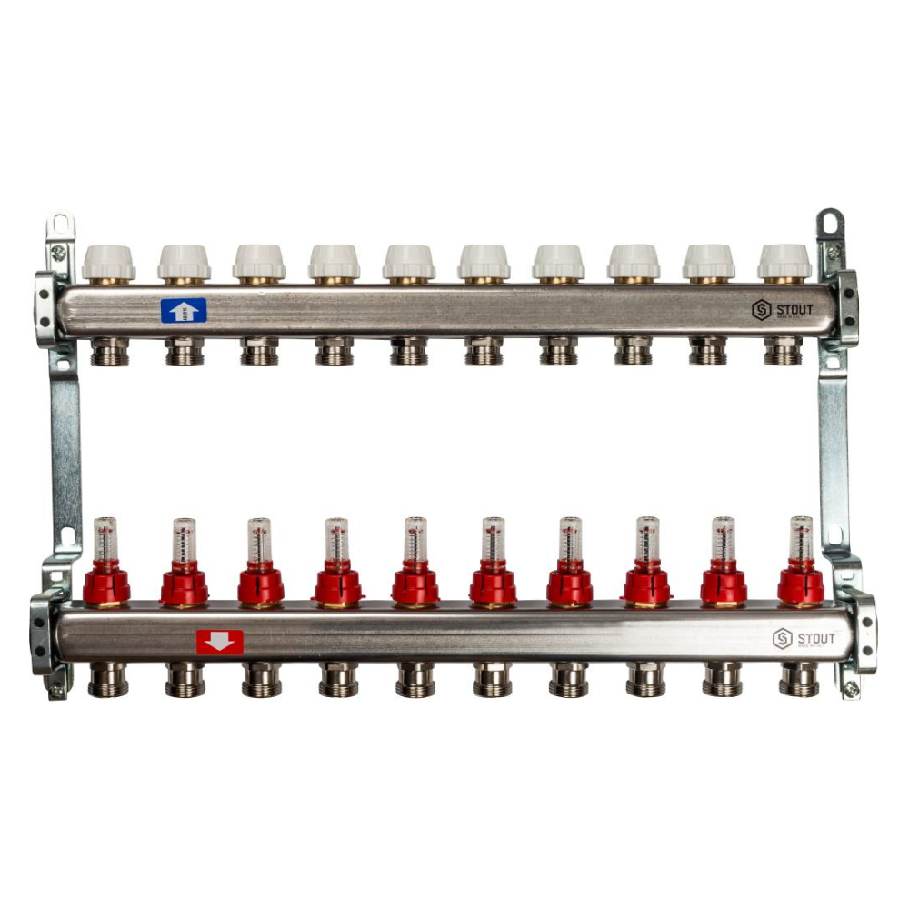 Коллектор из нерж. стали 10 выходов с расходомерами / Stout