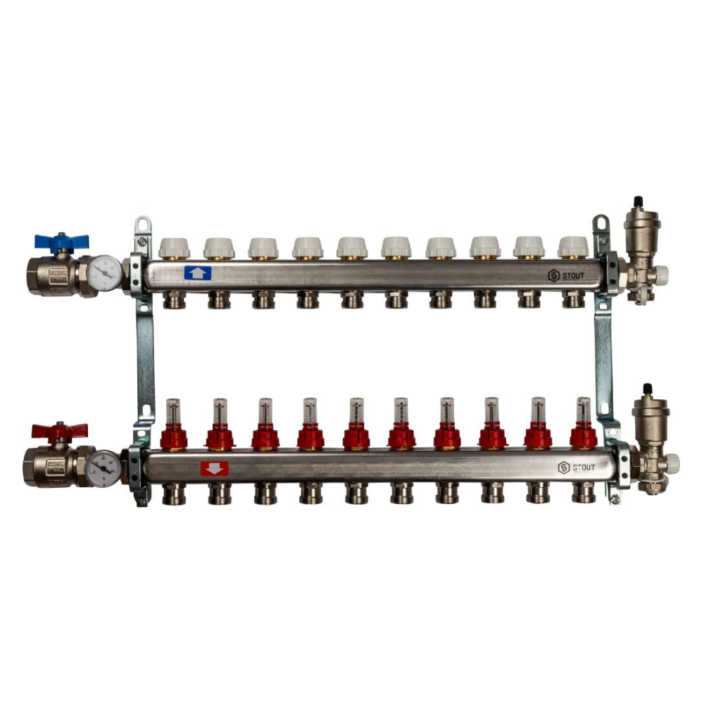 Коллектор из нерж. стали 10 выходов в сборе с расходомерами / Stout
