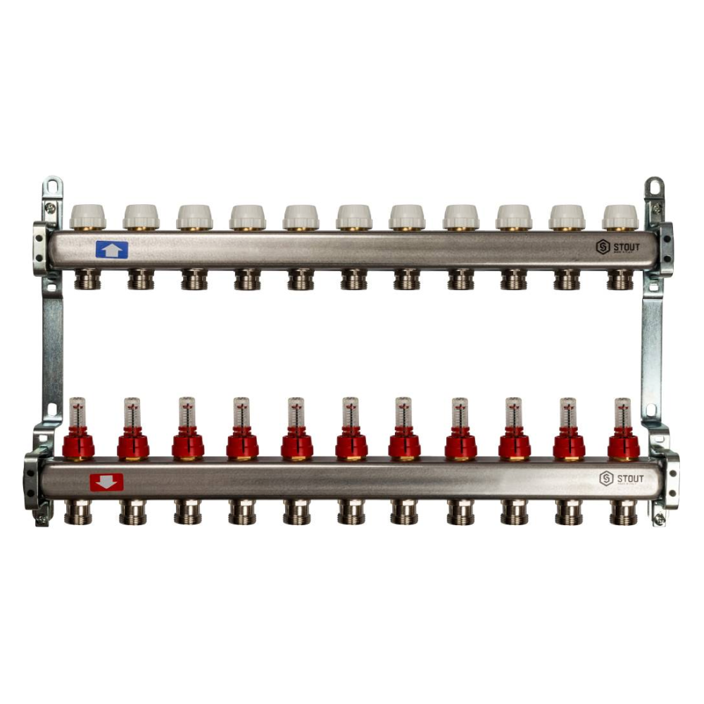 Коллектор из нерж. стали 11 выходов с расходомерами / Stout