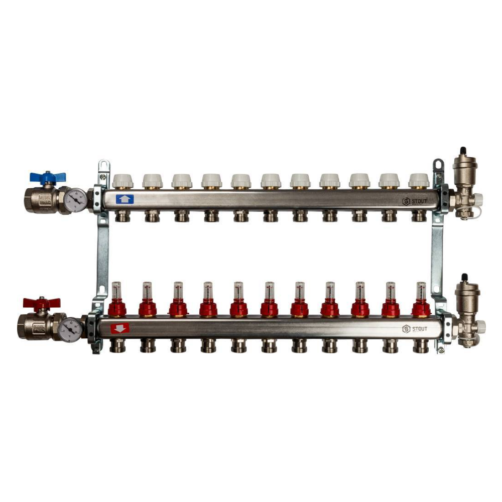 Коллектор из нерж. стали 11 выходов в сборе с расходомерами / Stout