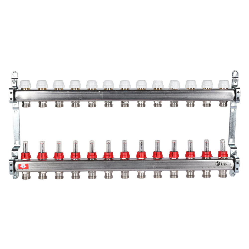 Коллектор из нерж. стали 13 выходов с расходомерами / Stout