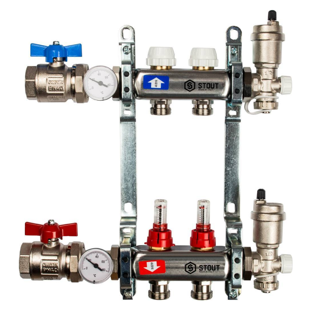 Коллектор из нерж. стали 2 выхода в сборе с расходомерами / Stout