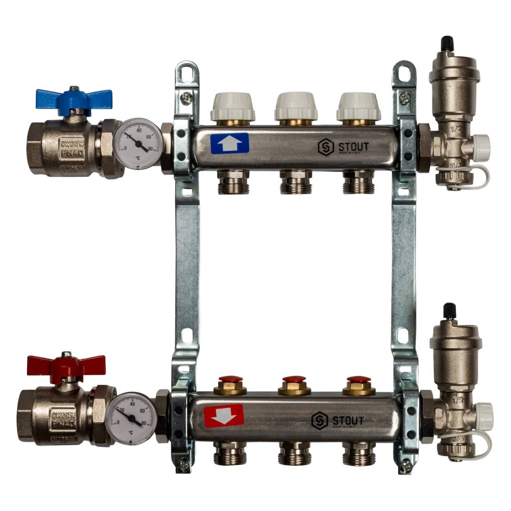 Коллектор из нерж. стали 3 выхода в сборе без расходомеров / Stout
