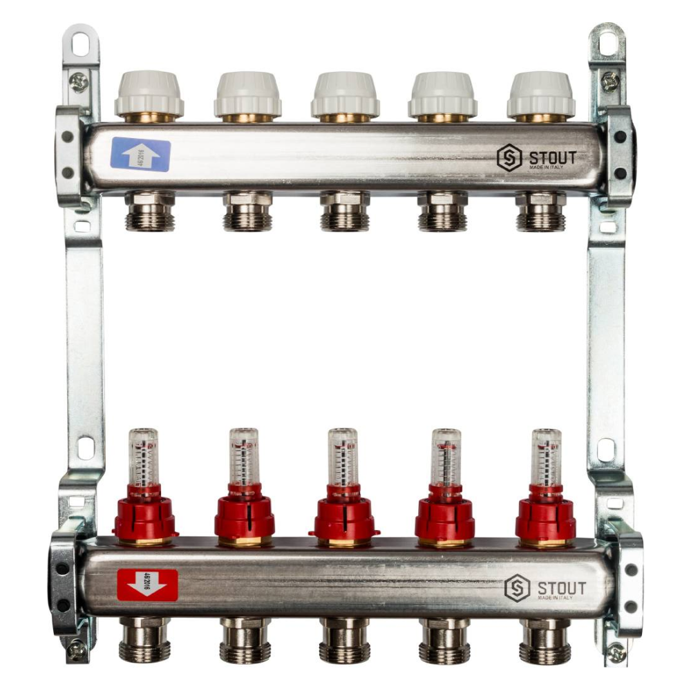 Коллектор из нерж. стали 5 выходов с расходомерами / Stout