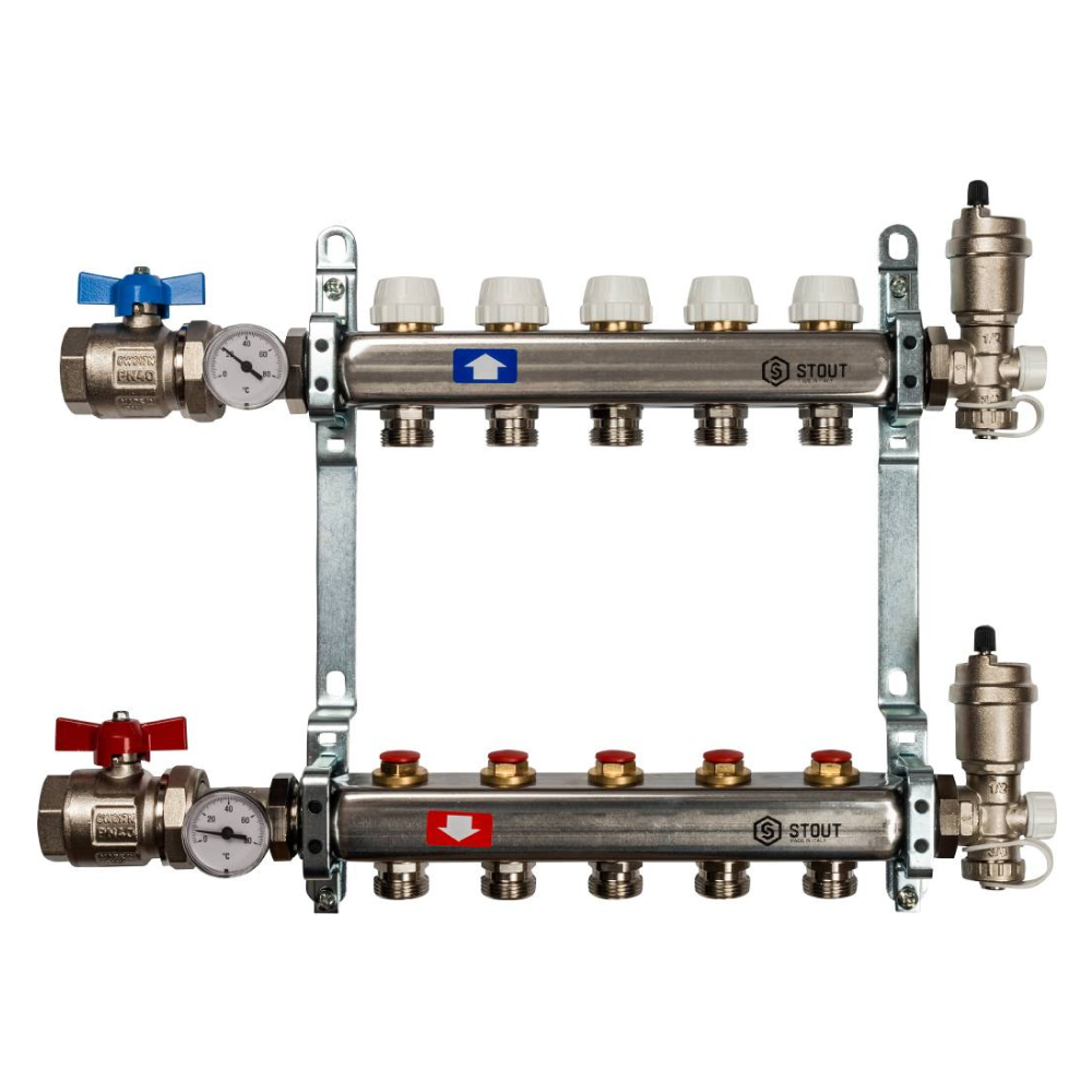 Коллектор из нерж. стали 5 выходов в сборе без расходомеров / Stout