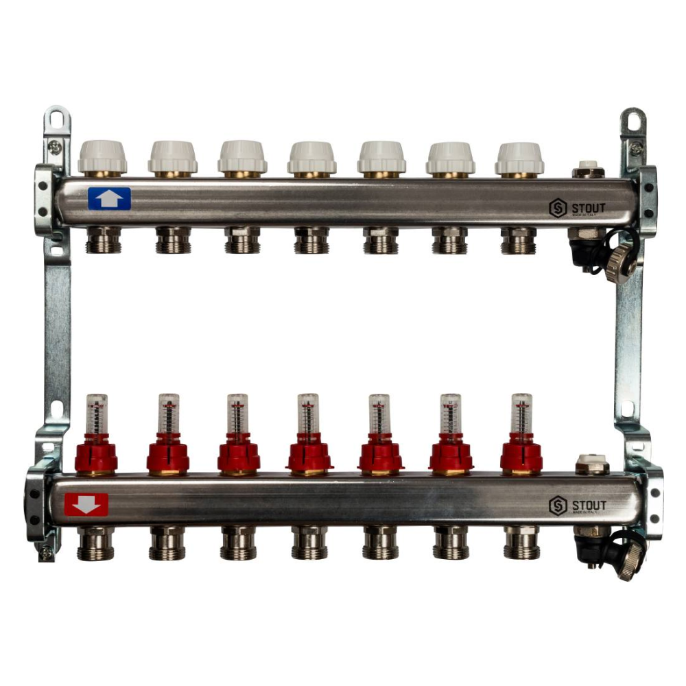 Коллектор из нерж. стали 7 выходов с расходомерами, с клапаном вып. воздуха и сливом / Stout