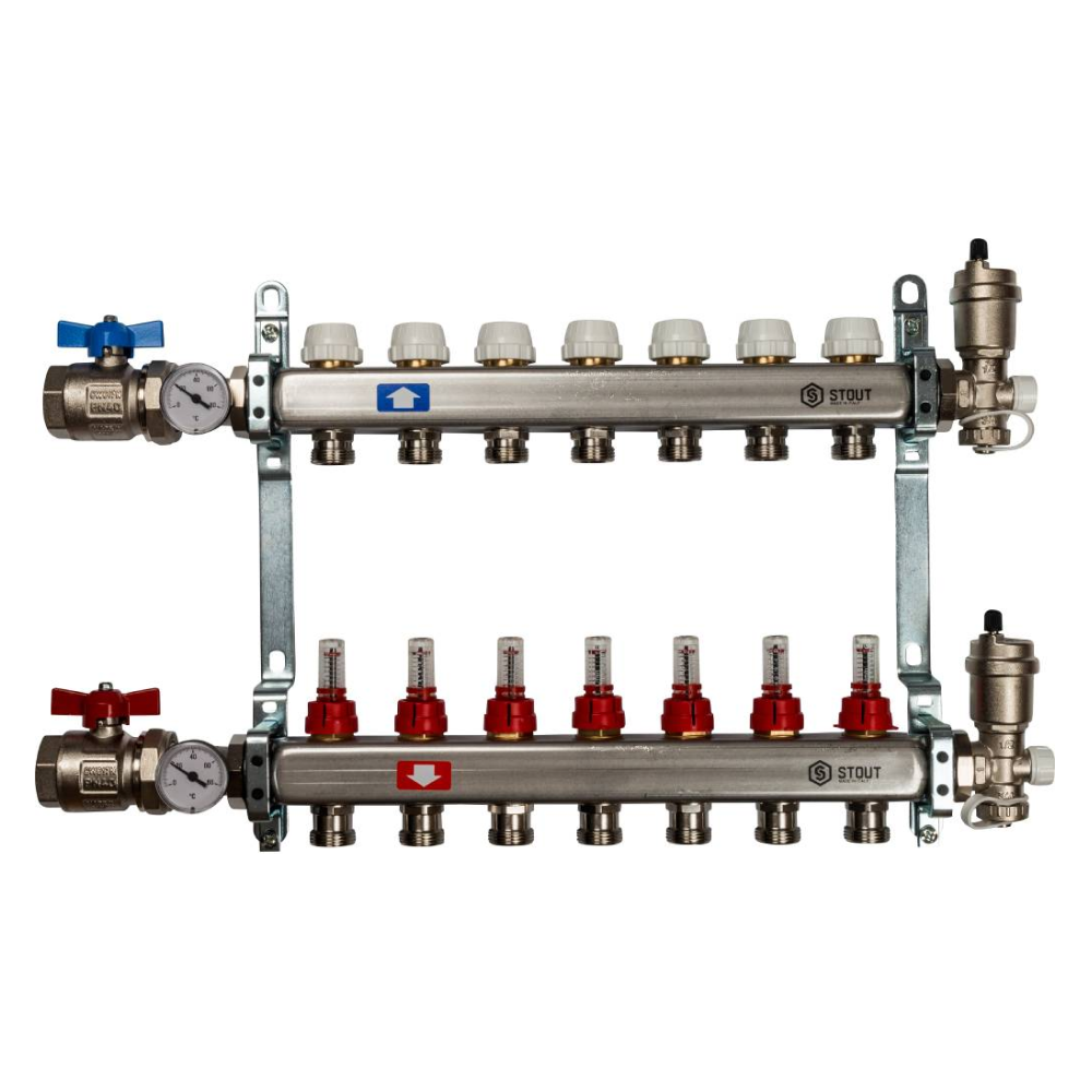 Коллектор из нерж. стали 7 выходов в сборе с расходомерами / Stout