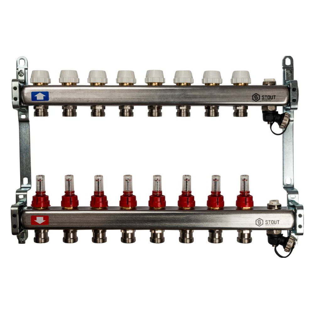 Коллектор из нерж. стали 8 выходов с расходомерами, с клапаном вып. воздуха и сливом / Stout