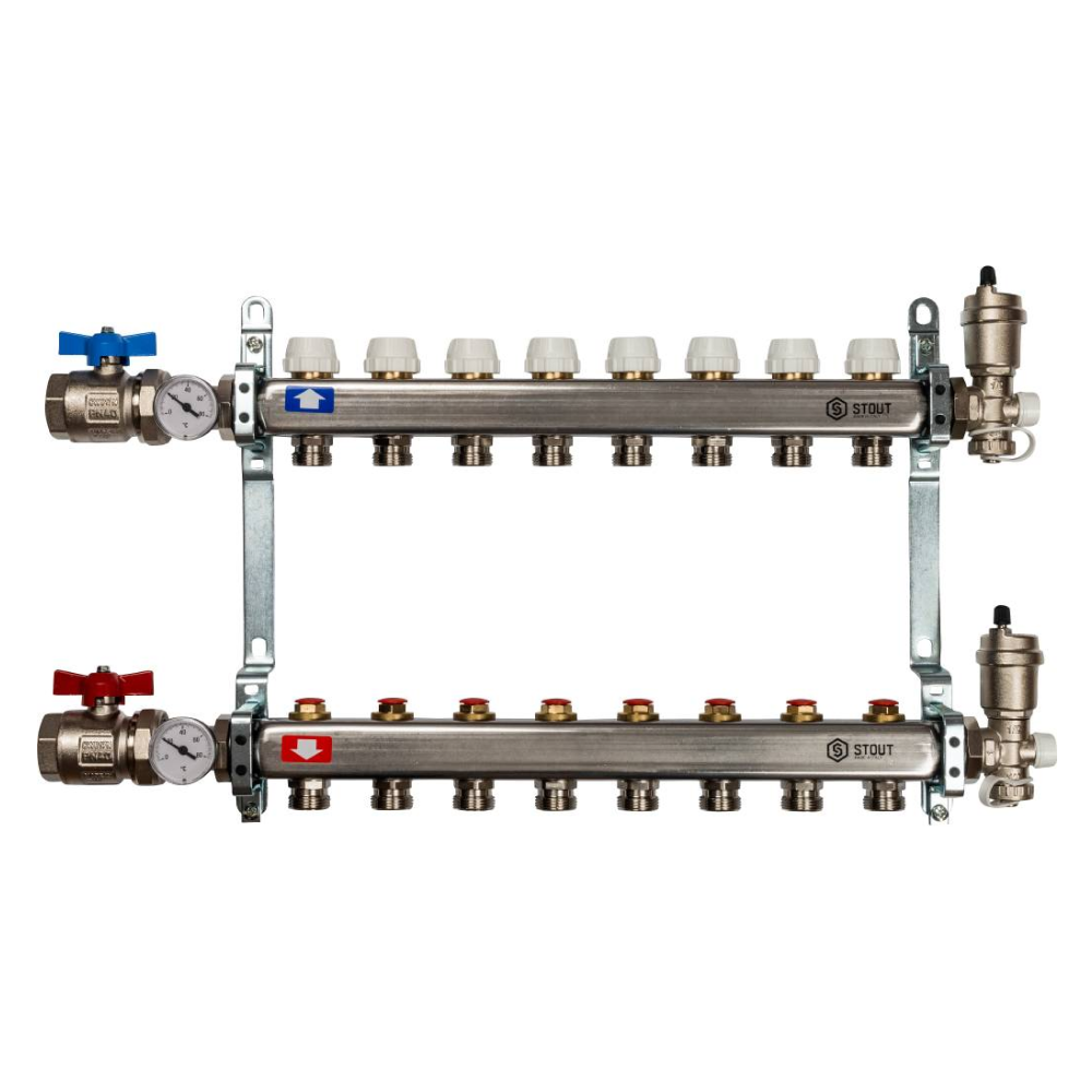 Коллектор из нерж. стали 8 выходов в сборе без расходомеров / Stout