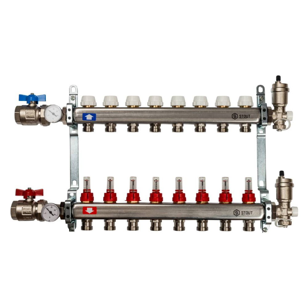 Коллектор из нерж. стали 8 выходов в сборе с расходомерами / Stout