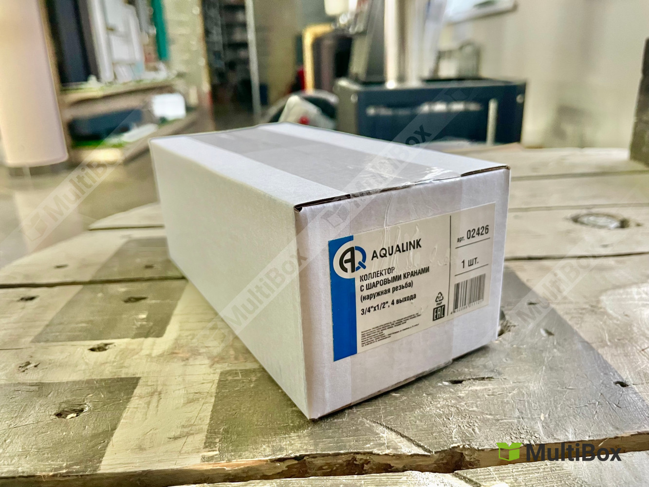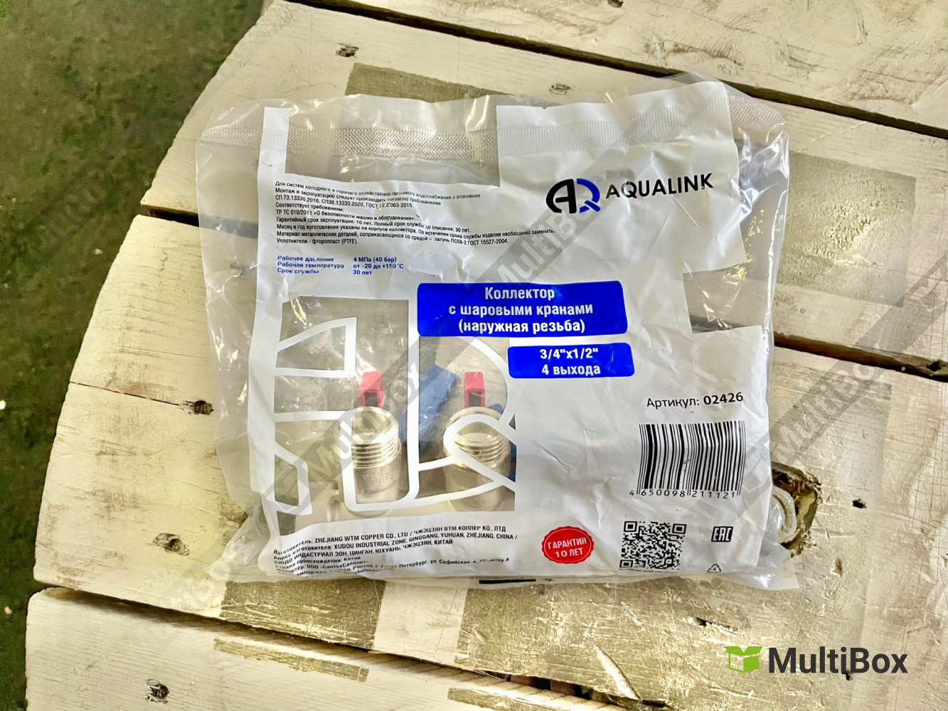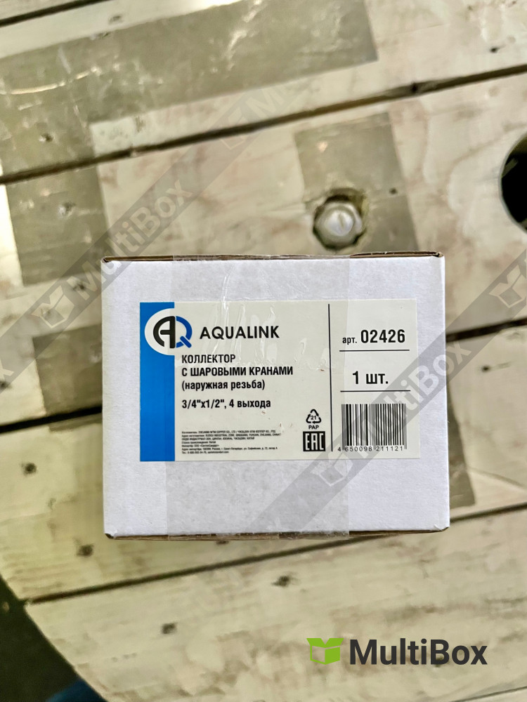 Коллектор резьбовой FM 3/4", 1/2"х4 с кранами Aqualink. Надежное распределение потоков воды. Идеален для систем отопления и водоснабжения.