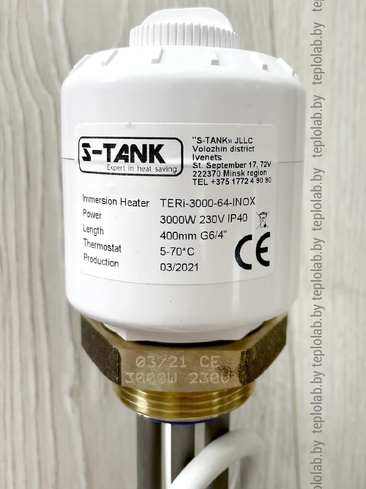 Электрический ТЭН со встроенным термостатом мощностью 3 кВт (220~230 В) 1 1/2" из нержавеющей стали от S-TANK предназначен для нагрева неагрессивных жидкостей, включая питьевую (санитарную) воду, в бытовых системах отопления и водоснабжения.Может использоваться в теплоаккумуляторах (буферных емкостях) в качестве основного, дополнительного или резервного источника тепла и в бытовых водонагревательных системах (бойлерах), обеспечивая эффективный нагрев воды в автоматическом режиме. Благодаря высокой надёжности и долговечности позволяет оптимизировать процесс подогрева воды, поддерживая комфортную температуру и минимизируя энергозатраты.